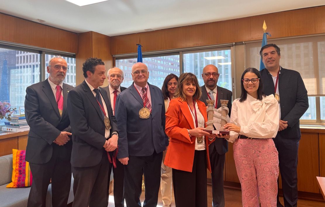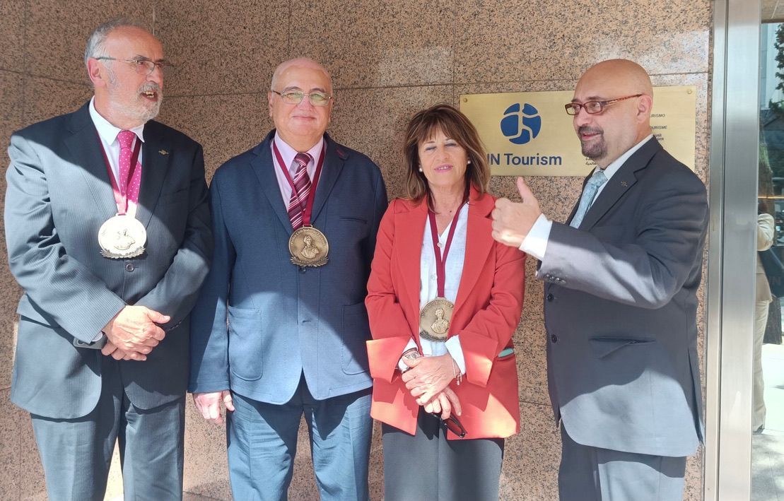 Durante la reunión, Dña. Natalia recibió el galardón físico del Premio Nacional Isabel de Farnesio de Diplomacia que por motivos de viajes oficiales fuera de España no pudo recoger en la Gala celebrada en Mota del Cuervo y posteriormente se departió acerca de las formulas de cooperación entre el Campus Universitario Intercolaborativo y la Organización Mundial del Turismo en materias de educación y divulgación, contando para ello ya con el ofrecimiento de colaboraciones y recursos de las quince universidades de prestigio que participan en distintos grados en la iniciativa universitaria fundada en Castilla-La Mancha, con presencia de Organismos de Educación Superior de España, Italia, Francia, México, Chile, Brasil, USA, Turquía, China e India.